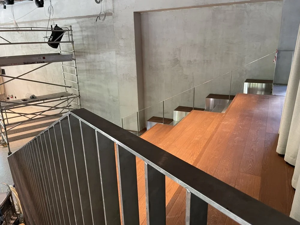 På Tjuvholmen Allé har vi produsert og montert buet ståltrapp for støp. Vi har også levert rekkverk med eikhåndløper.